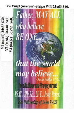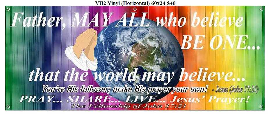 To order a free* Prayer Banner for any church you choose, click this button, save the form to your PC, then fill in the blanks and email it to; john17-21@msn.com, or print and mail it to the address below.